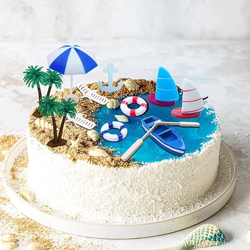 Snapklik Com 13pcs Hawaiian Beach Cake Decorations Summer Ocean Cake Toppers Beach Chair Umbrella Boat Palm Tree Cake Topper For Tropical Hawaii Aloha Luau Swimming Pool Birthday Baby Shower Party Supplies